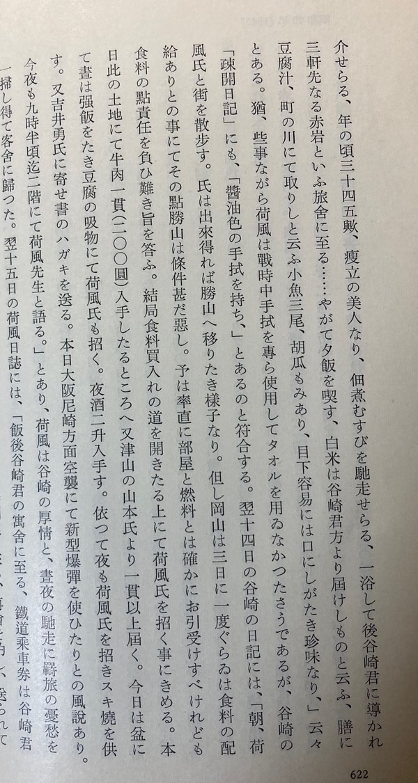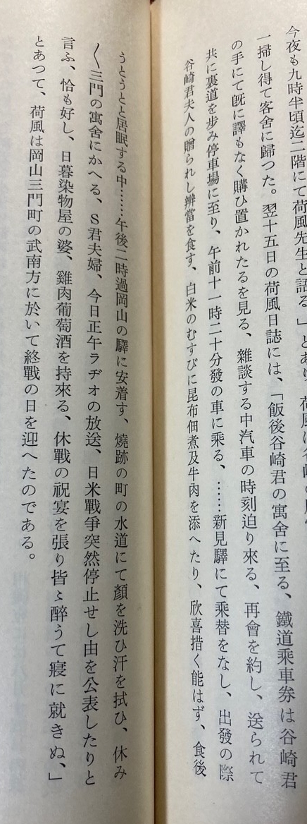 終戦の1945年、永井は戦災で岡山に疎開。 谷崎も岡山近傍 勝山に疎開。
